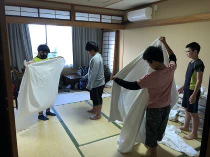 6年生修学旅行 起床・朝の準備 公開日 2020/10/06 更新日 2020/10/06 6年生 今日の朝は6時半起床です。起きた後は,朝食までに部屋の片づけを行い,集合場所に向かいます。素早く行動できたので,時間前に揃いました。いい心がけですね。
