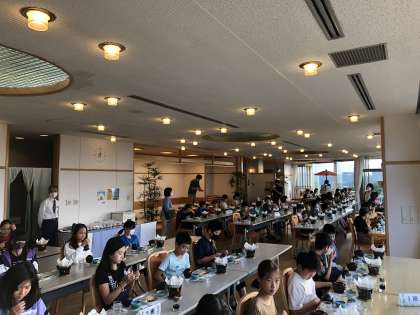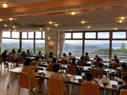 7時からは朝食です。班ごとに着席をして,食事係のあいさつでいただきます。