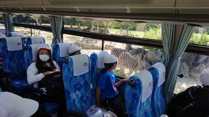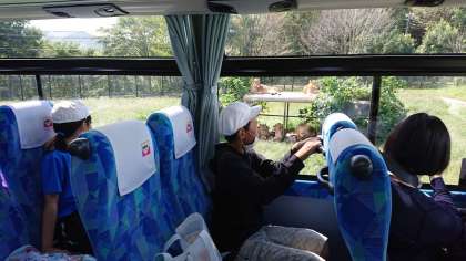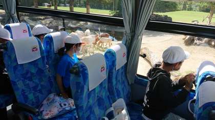 6年生修学旅行 肉食獣エリアから草食獣エリアへ 公開日 2020/10/06 更新日 2020/10/06 6年生 バスに乗って移動をしていきます。声が聞こえてきそうなほどの距離にいる動物たちもいました。近くで見ると,実際に思っていたよりも大きく感じられました。