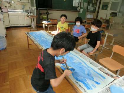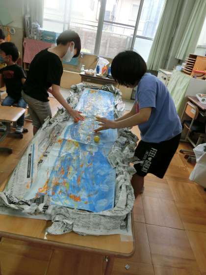 そこで,みんなで『おかえり!』の横断幕を作ることにしました。