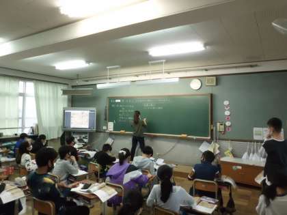 社会科の学習をしています。 長篠の戦の合戦図をみて,気づいてことを発表していました。