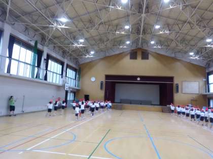 体育フェスティバルの練習をしています。 音楽に合わせてダンスをしています。