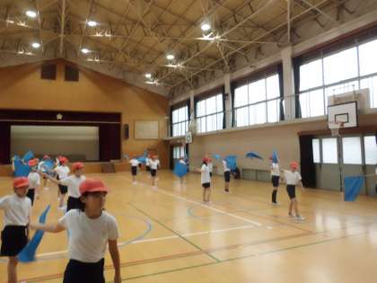 体育フェスティバルの練習をしています。 フラッグの操作も上手になってきました。