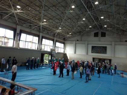今年度は,新型コロナウイルス感染拡大防止のため,体育館に各地域の代表の方が集まり,訓練(展示見学)を行いました。