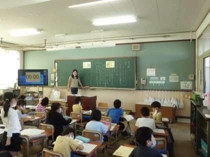 国語の学習の様子です。 「お手紙」の教材文の読み取りを深めています。 このあと,グループで音読発表をします。