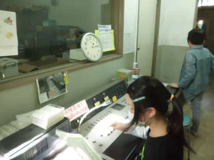 当番活動の様子です。 放送委員会の子どもたちが清掃時間の放送をしています。