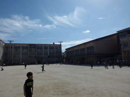 中間休みの様子です。 グラウンドでは,子どもたちが元気に遊んでいます。