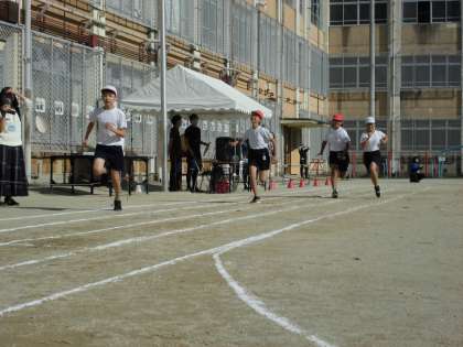 高学年の100m走です。中学年よりもさらに速くなり,迫力がありました。