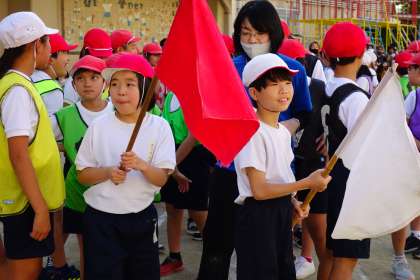 「旗を持って歩きました。つなひきで,がんばってつなをひきました。来年もやりたいです。」