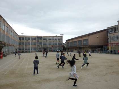 グラウンドで楽しく遊んでいます。