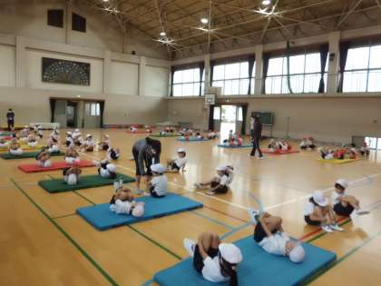 体育の学習の様子です。 マットあそびに取り組んでいます。 どの子も,楽しそうです。