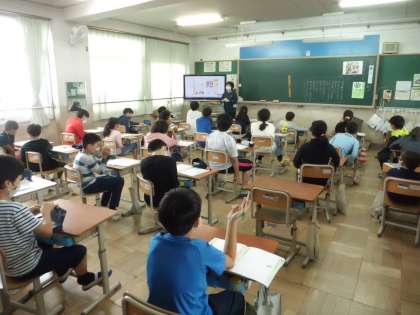 道徳の学習の様子です。 『フィンガーボール』の教材を通して,礼儀について考えました。