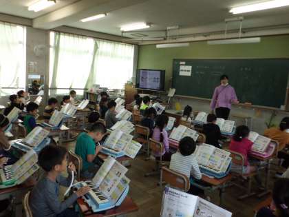 鍵盤ハーモニカで,タンギングの練習をしています。