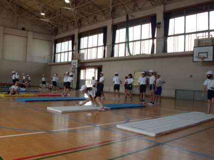 マット運動に取り組んでいます。