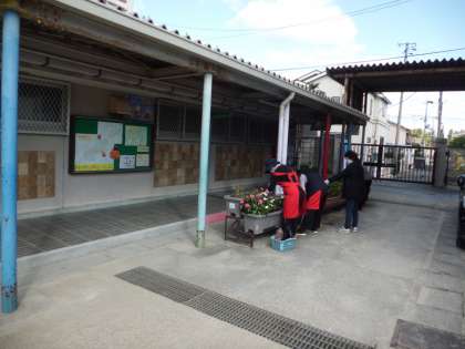 淀地域女性会の方に校門横の花壇に新しい花を植えていただきました。