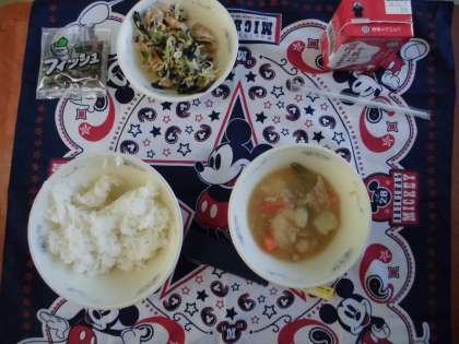 今日は,じゃがいもがホクホクしていて,にんじんのオレンジ色,三度豆の緑色がとても彩り鮮やかでした。