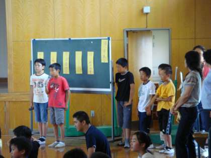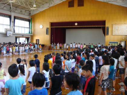 児童集会 公開日 2011/07/12 更新日 2011/07/12 学校の様子 今日の児童集会では、 まず、飼育委員会から、「休み時間に飼育小屋の開放をしています。 ぜひ来てください」と呼びかけがありました。 次に、音楽委員会が中心となり今月の歌を全校児童で歌いました。 毎回、計画委員会の児童が司会進行をしてくれています。