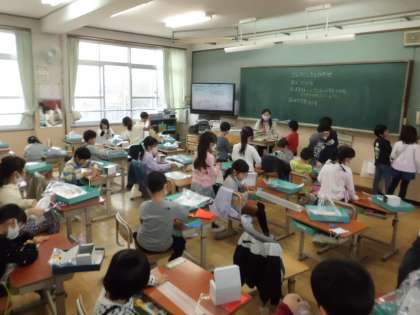 1102 1年生 公開日 2020/11/02 更新日 2020/11/02 1年生 図画工作の学習の様子です。 「にょきにょき とびだせ」の学習に取り組んでいます。 おもいおもいの絵をビニールの袋に描きました。