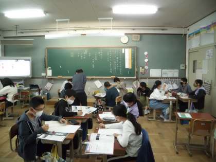国語の学習の様子です。 日本文化の魅力が伝わるように,本などを活用して,新聞を作っています。