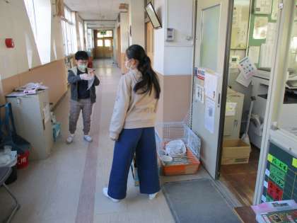 中間休みの様子です。 飼育委員会の子どもたちが,当番活動に取り組んでいます。