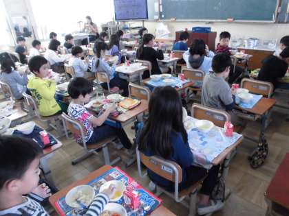 1年生にとっては,初めての給食の手作りデザートの登場でした。