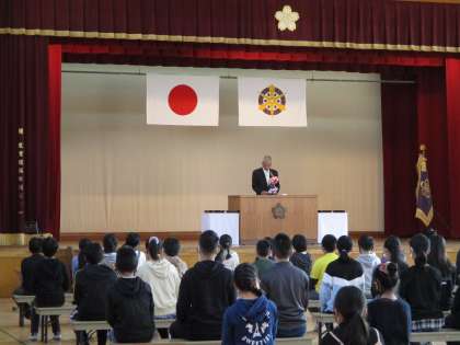 高学年は体育館,低・中学年は教室からのリモート参加という形式になりました。