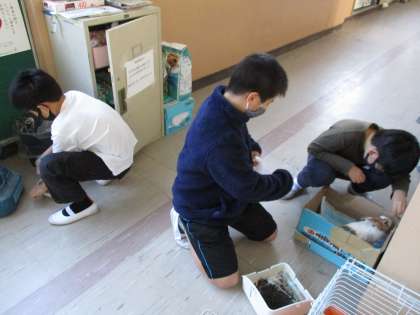 飼育委員会の子どもたちが当番活動に取り組んでいます。