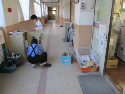 中間休みの様子です。 飼育委員会の子どもたちが当番活動に取り組んでいます。