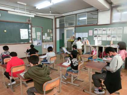 毎日「ジムノペディ第1番」の静かな音楽が流れる中,10分間読書をしました。1人1人好きな本を選んで読みました。