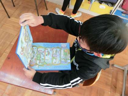 今年度は,コロナの影響で読み聞かせの会ができないので・・・と,「よんでよん」さんからおすすめの絵本をお借りしています。