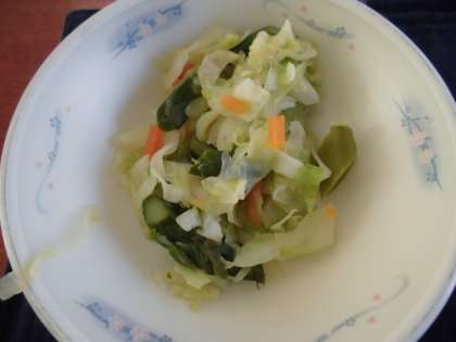 アスパラガスのソテーはキャベツのシャキシャキとした食感を楽しめました。