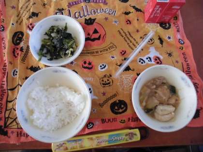 今日は,和歌山県産の冬に美味しい白菜が入った「ほうれん草とはくさいのごま煮」が登場しました。ほうれん草の甘味と,ごまの風味・けずりぶしのうま味たっぷりで美味しくいただきました。