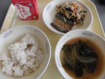 12月10日(木)の献立は,麦ごはん・牛乳・開干さんまのからあげ・切干大根の煮びたし・みそ汁でした。