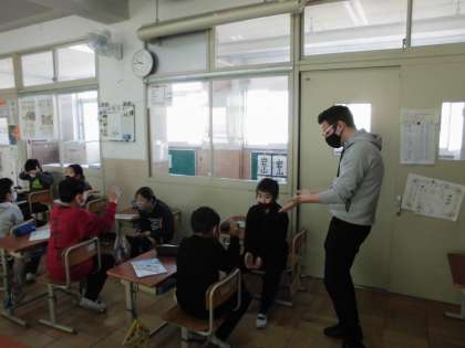 デロン先生と共に,食べ物を英語で伝える学習が楽しくできました。