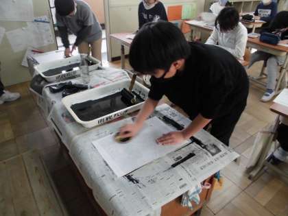 4年生 版画 公開日 2020/12/10 更新日 2020/12/10 4年生 今日の図工の時間に,版画の試し刷りをしました。 初めて使った彫刻刀で彫った線が,どのように紙に表れるのかドキドキしながら刷りました。 子どもたちから,「うまくいった!」「もう少し深く彫ったらよかった。」「もっとインクをしっかりつけたらよかった。」と楽しそうな感想がたくさん出てきました。