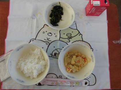 12月11日(金)の献立は,ごはん・牛乳・親子煮・ほうれん草のおかか煮でした。