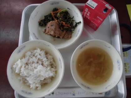 今日はさばのみそ煮に白ねぎが登場しました。しょうが・赤みそ・三温糖・料理酒・濃口醤油でじっくり味をしみ込ませる中に,白ねぎも一緒に煮ました。白ねぎの甘味を味わえた一品でした。