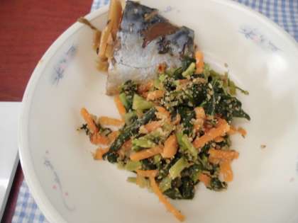 だいこん葉のごまいためは,すりごま・花かつおの風味がよく,美味しくいただきました。