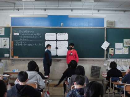 安全な学校生活を送るために,「ケガをしないために気をつけよう。」「ポスターなどで呼びかけてみたらどうかな。」など,たくさんの意見が出てきました。