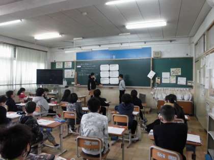 今日は,2つのことがらが入った3つの表から読み取れることを考え,そこから自分たちの生活の中でできることについて話し合いました。