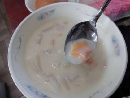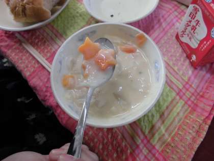クリーミーなシチューの中に,みずみずしい大根が入っています。いつものシチューとは違った美味しさがありました。