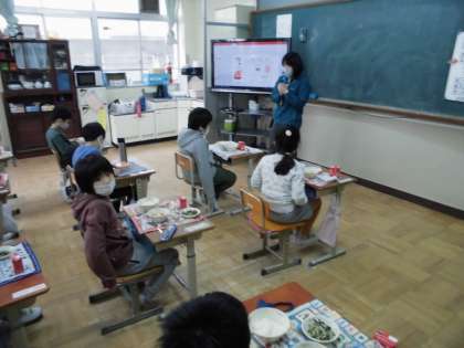 若草学級では,毎日「いただきます」の前に食器の置き場所の確認し,今日の給食について「大豆が変身した豆腐を使った献立です。」など給食についての紹介をしています。