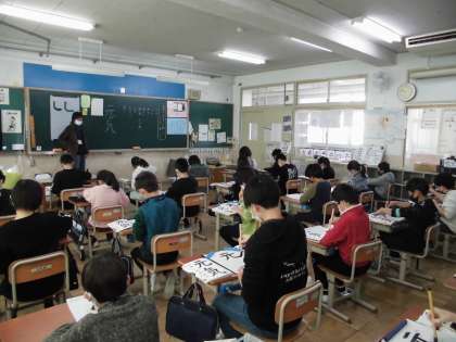 4年生 書写 公開日 2021/01/20 更新日 2021/01/20 4年生 書き初め『元気』という言葉を書きました。 新年に入って,初めての書写の学習です。 はねやはらい,曲がりに注意して書きました。 次回,いよいよ清書をします。