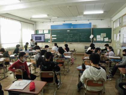 4年生 外国語活動 公開日 2021/01/21 更新日 2021/01/21 4年生 『What do you want?』の学習です。 今日は,ALTのデロン先生が来てくれました。 好きな果物を入れたオリジナルジュースをクラスのみんなに紹介したり,前回作ったオリジナルパフェをペアになって紹介したりしました。