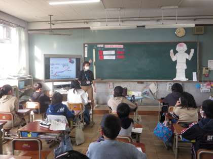 今日は栄養教諭の内輪先生にお弁当の役割とこれからの中学生での食事について授業をしていただきました。中学校では選択制の給食があります。自分でも栄養バランスを考えて欲しいですね。