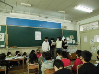 4年生 社会 公開日 2021/01/29 更新日 2021/01/29 4年生 『国際交流のさかんな舞鶴市』の学習です。 舞鶴市と交流な盛んな大連市,ナホトカ市,ポーツマス市についてグループに分かれて調べてきました。 今日はグループごとに発表しました。 それぞれの都市の交流の内容やきっかけなどを交流することができました。 次回からは,学習のまとめをしていきます。