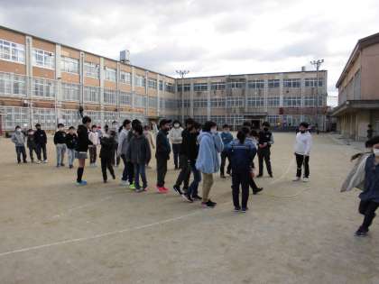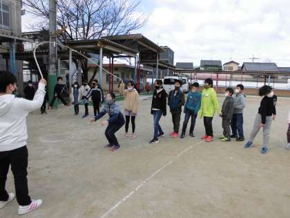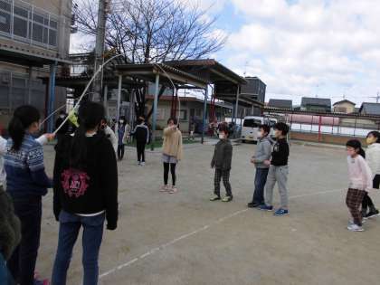 4年生 中間休み 公開日 2021/02/02 更新日 2021/02/02 4年生 2月に行われる大繩大会に向けて,休み時間を使ってみんなで楽しく練習しています。 なかなかタイミングをとるのが難しくて,みんなで声をかけ合っています。 体育で跳んだときより上達している人もいて,びっくりしました。 本番がとても楽しみです。