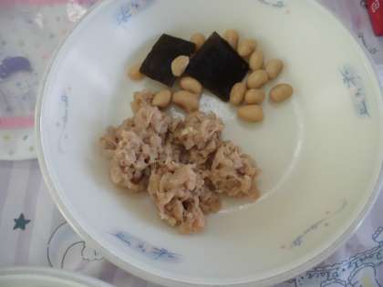 2月5日(金)の献立は,ごはん・牛乳・ツナそぼろ丼(具)・こんぶ豆・いものこ汁でした。