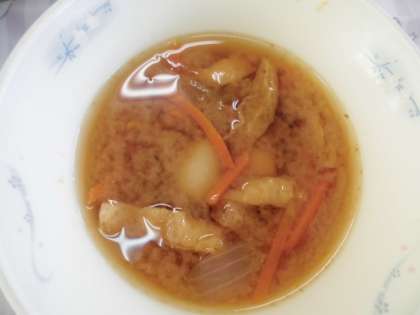 地産地消の「京北みそ」を使ったいものこ汁が登場しました。にんじん・たまねぎ・里芋・油揚げが入った具だくさんの汁物で美味しかったです。