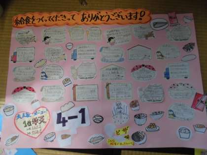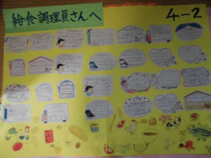 4年生は,紙いっぱいに給食調理員さんへの感謝のメッセージを届けてくれました。